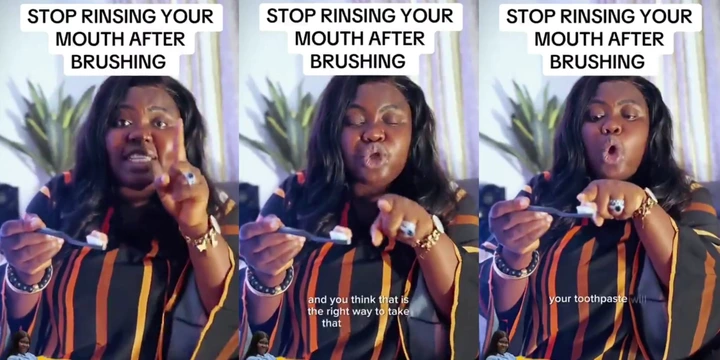 “Don’t rinse your mouth after brushing” — Lady sparks debate on dental hygiene