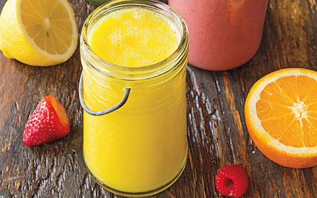 I created this vibrant yellow smoothie when I had a nasty flu and was desperate to get better. Antioxidant-packed citrus fruit and fresh ginger unite to kick any cold or flu’s behind.